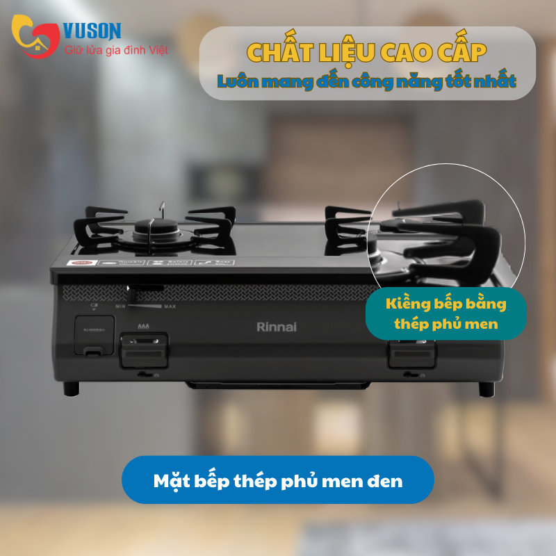 - Chất liệu mặt bếp: Thép phủ men đen