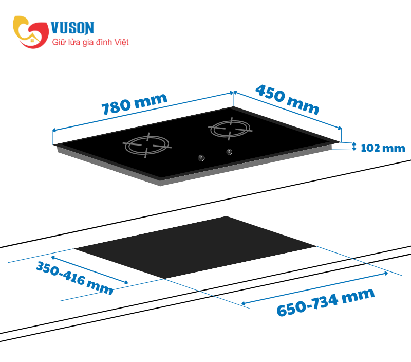 - Kích thước sản phẩm: 780R x 450S x 102C mm