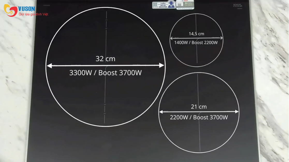 - 3 vùng nấu linh hoạt – phù hợp với mọi kích thước nồi.