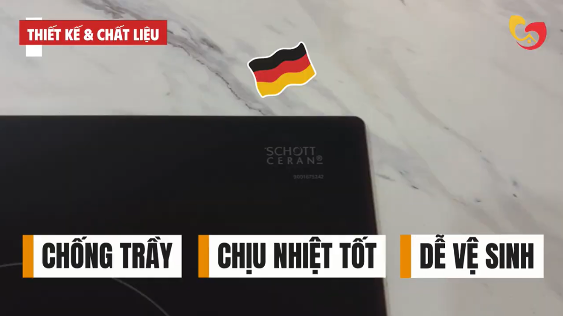 Mặt kính Schott Ceran từ Đức nổi tiếng với khả năng chịu nhiệt cao, chống trầy xước hiệu quả và đặc biệt rất dễ vệ sinh sau khi nấu.