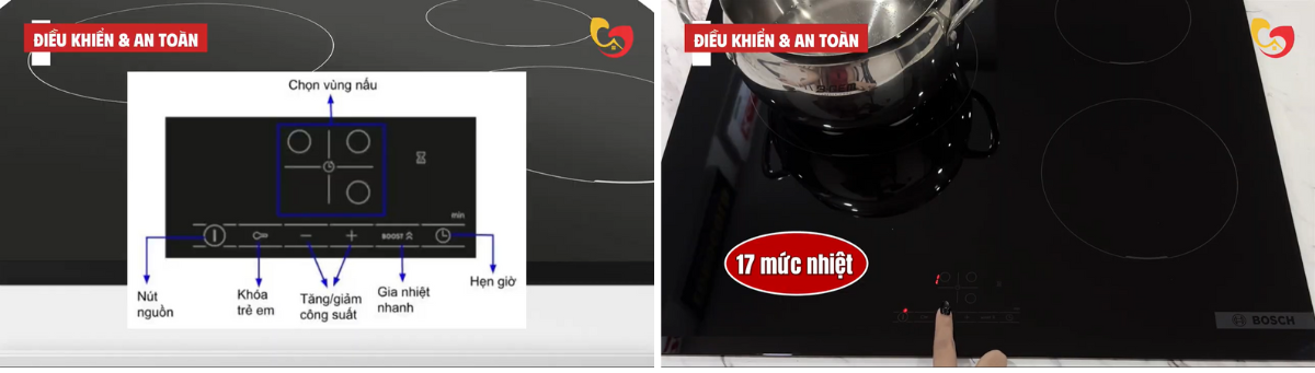 Bếp cung cấp 17 mức nhiệt – hỗ trợ chế biến linh hoạt từ các món hầm, hâm nóng đến các món chiên xào cần nhiệt lớn.