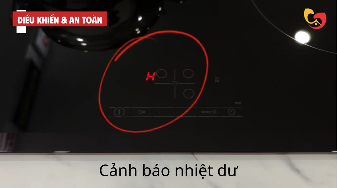 - Cảnh báo nhiệt dư: hiển thị khi mặt kính còn nóng để tránh vô tình chạm vào