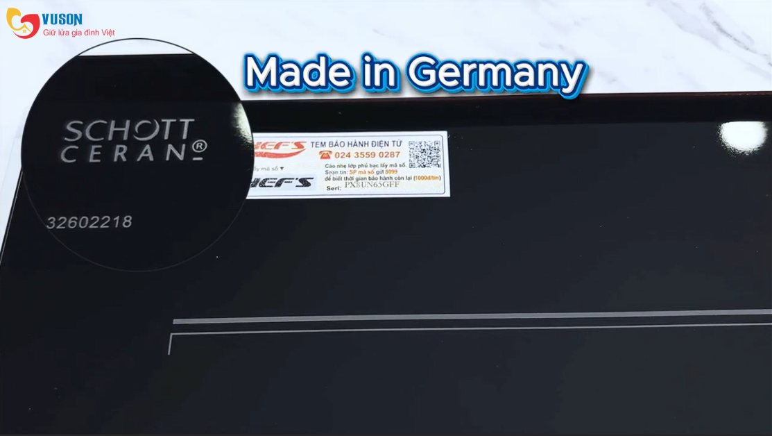 Kết hợp với đó là mặt kính Schott Ceran – một trong những dòng kính chịu nhiệt, chịu lực tốt trên thị trường. Việc bo viền nhôm giúp tăng độ hoàn thiện và hạn chế sứt mẻ cạnh kính trong quá trình sử dụng lâu dài.