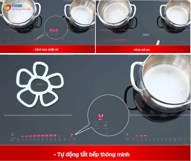 - Tự động tắt khi không có nồi hoặc khi quá nhiệt