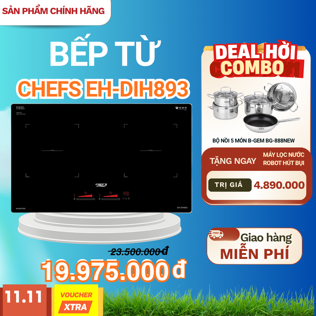 Bếp Từ Đôi Chefs EH-DIH893 là sản phẩm cao cấp đến từ thương hiệu Chefs nổi tiếng của Đức, được phân phối chính hãng bởi Siêu Thị Bếp Vũ Sơn. Sở hữu thiết kế sang trọng, hiện đại cùng nhiều tính năng thông minh, Chefs EH-DIH893 mang đến cho bạn trải nghiệm nấu nướng hoàn hảo và tiện lợi, xứng đáng là sự lựa chọn hàng đầu cho gian bếp nhà bạn.