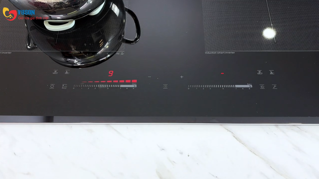 Hệ thống điều khiển trượt cảm ứng với 9 mức công suất độc lập cho từng vùng nấu giúp thao tác điều chỉnh nhiệt độ diễn ra nhanh và chính xác.