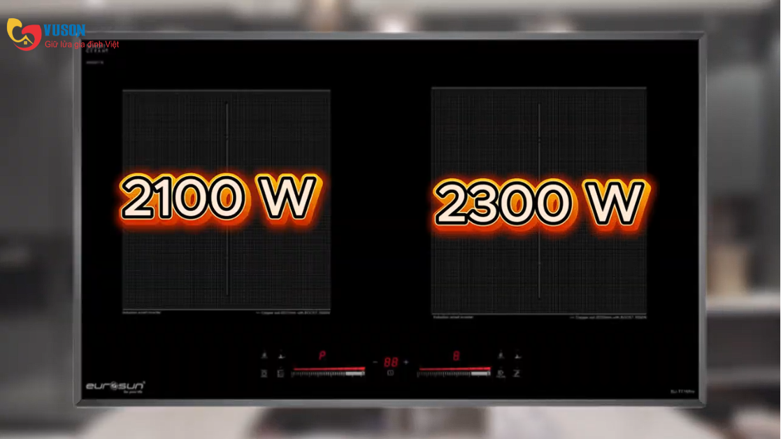 - Vùng phải: 2300W – Booster tối đa 3000W