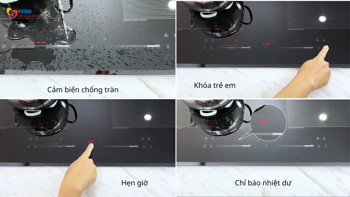 Bếp tích hợp đầy đủ các cơ chế bảo vệ: