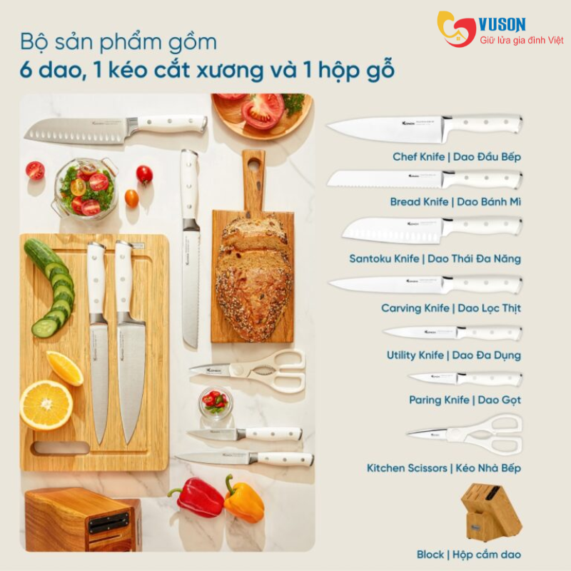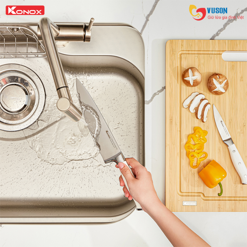 Bộ dao làm bếp cao cấp 7 món Konox Gouter là sự lựa chọn tối ưu cho mọi gian bếp hiện đại. Với chất liệu thép Đức bền bỉ, thiết kế tinh tế, đa dạng công năng và tính an toàn cao, sản phẩm không chỉ hỗ trợ nấu nướng hiệu quả mà còn nâng tầm đẳng cấp cho căn bếp của bạn.
