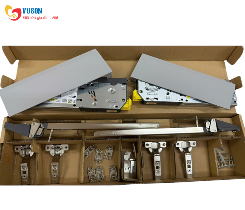 - Bộ tay nâng cho tủ 2 cánh, mở xếp ( dùng cho cánh gỗ bao gồm 2 bộ bản lề )