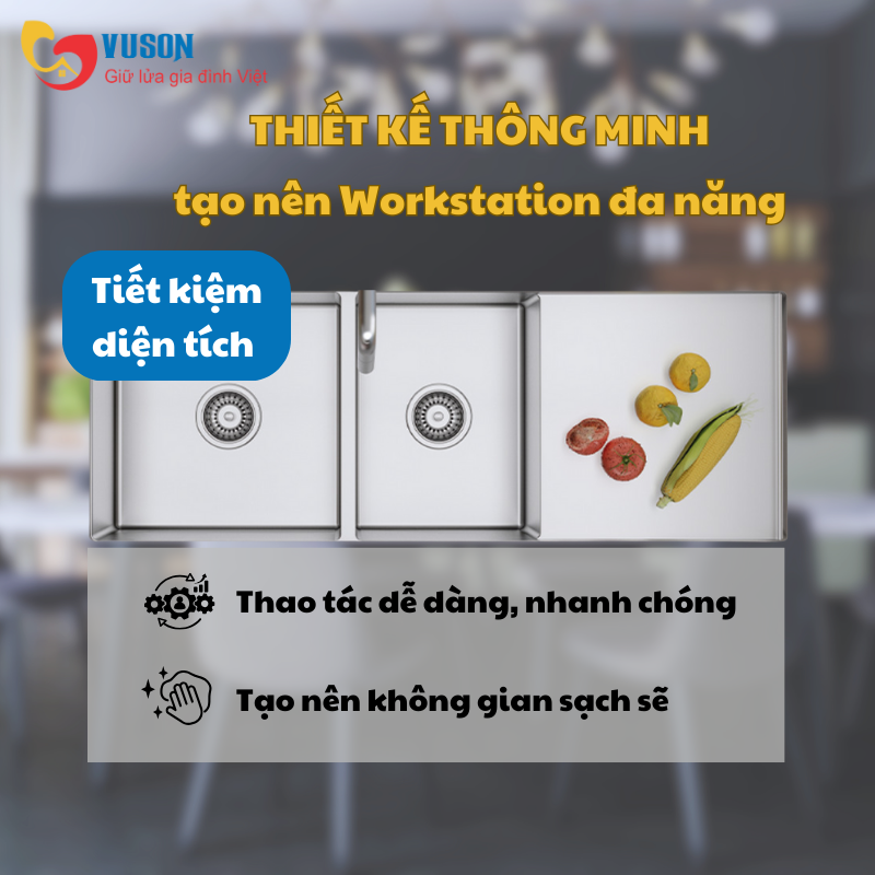 Với chất liệu Inox cao cấp, thiết kế Workstation tiên tiến và khả năng lắp đặt linh hoạt, đây chắc chắn là khoản đầu tư xứng đáng cho bất kỳ gian bếp hiện đại nào.