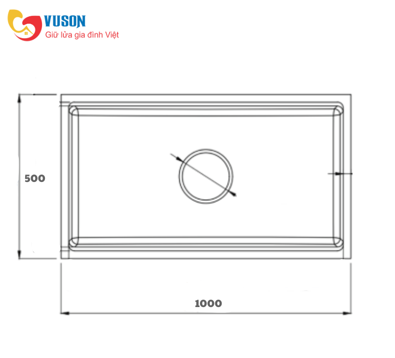 - Kích thước sản phẩm : 1000R x 500S x 230C mm