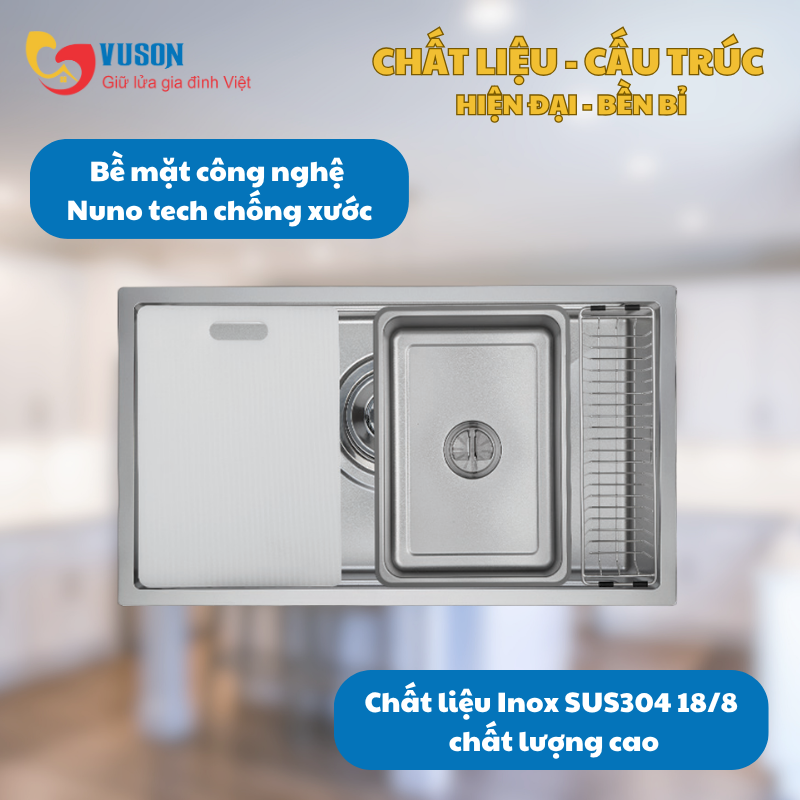 - Chất liệu: Inox SUS304 18/8