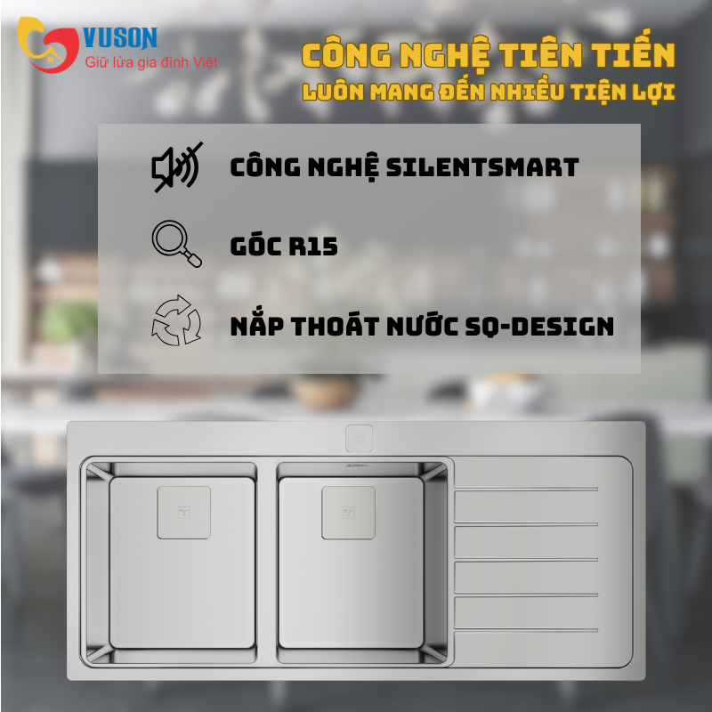 - Kích thước 2 hộc rửa: 340R x 200S x 400C (mm)
