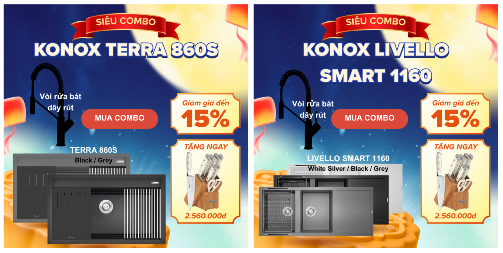 Với chương trình ưu đãi Konox 2025, khách hàng không chỉ nhận quà tặng giá trị mà còn được sở hữu những sản phẩm nhà bếp cao cấp, thiết kế tinh tế, bền bỉ và tối ưu công năng. Đây là cơ hội tuyệt vời để bạn nâng cấp căn bếp của mình và tận hưởng trọn vẹn niềm vui sum vầy mùa Trung Thu.