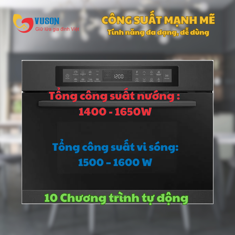 - Tổng công suất vi sóng: 1500 – 1600 W