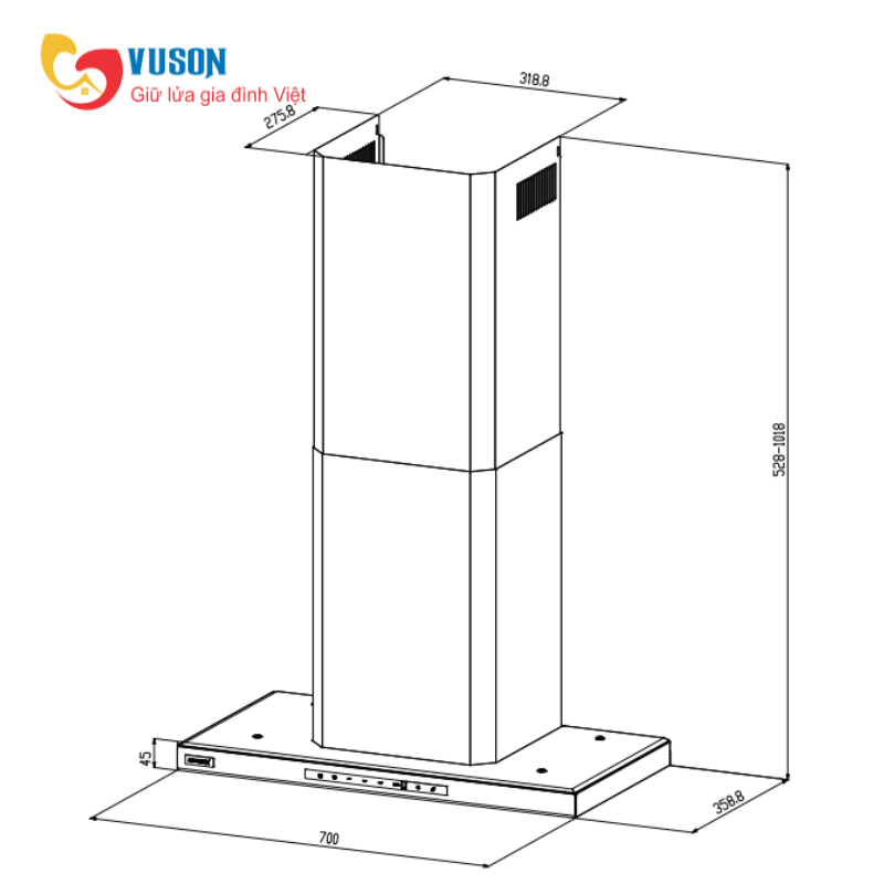 - Kích thước sản phẩm: 700R x 360S x 528-1018C mm
