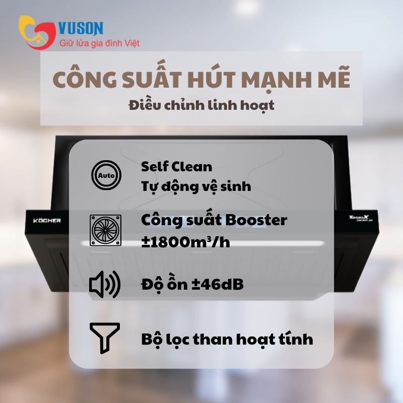 Máy hút mùi Kocher Turbo Smart 3D X3D-350D Auto Clean