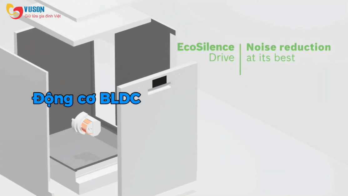 Bên trong máy rửa bát Bosch Serie 4 này là động cơ không chổi than BLDC – công nghệ đặc trưng của Bosch, giúp máy vận hành mạnh mẽ, bền bỉ và cực kỳ êm ái.