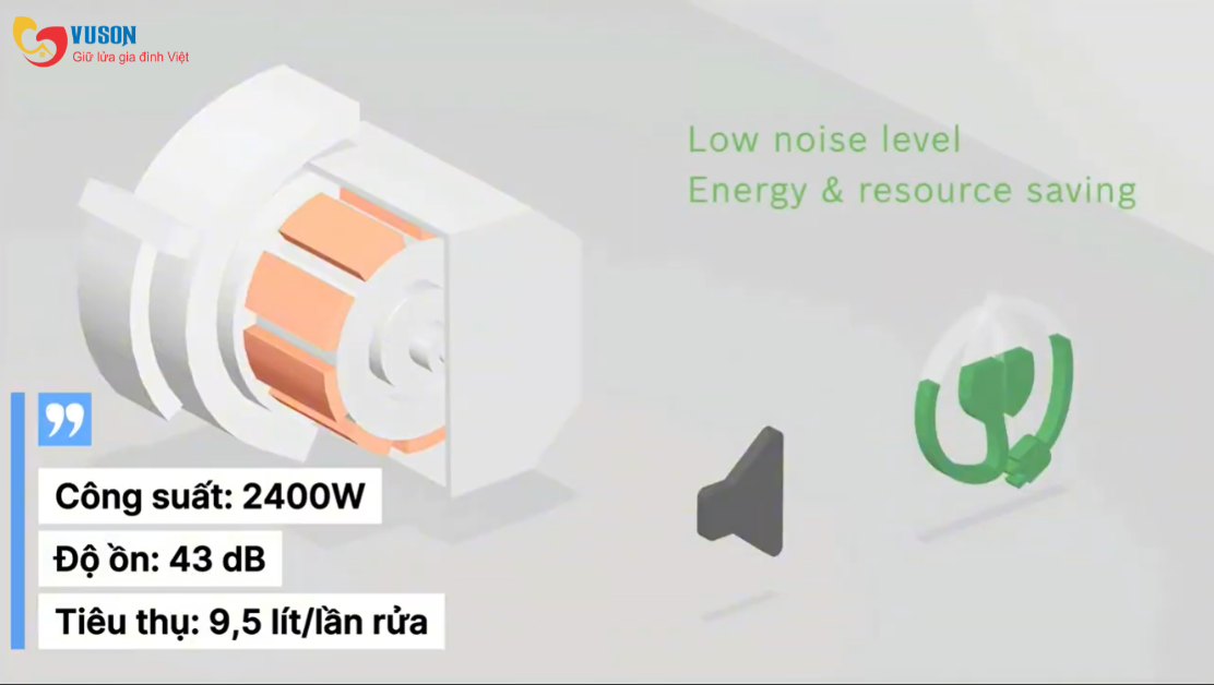 Máy rửa bát Bosch Serie 8 cao cấp được trang bị động cơ không chổi than EcoSilence Drive, mang lại khả năng vận hành êm ái và tiết kiệm năng lượng vượt trội: