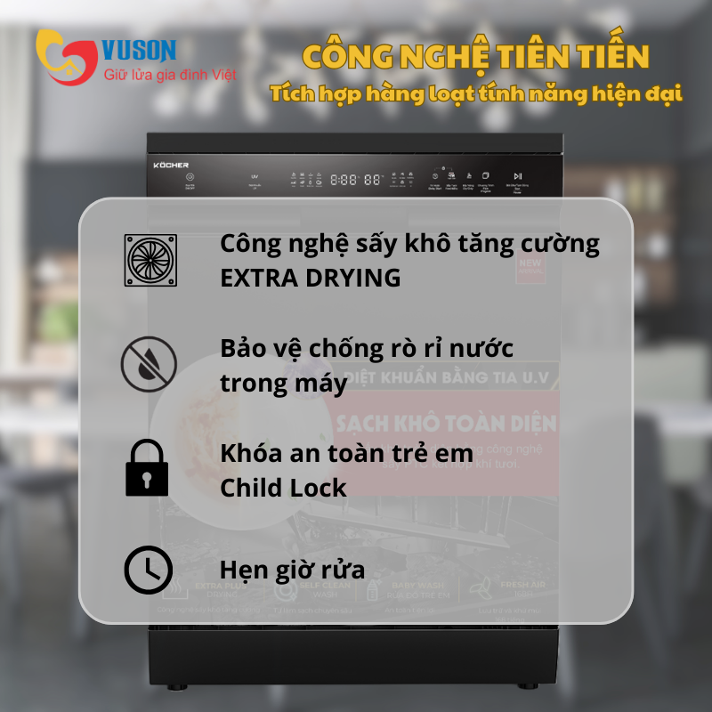 - Mức tiêu thụ điện năng: Khoảng 0.86Kwh/lần rửa