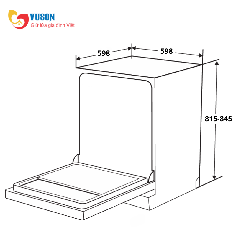 - Kích thước sản phẩm: 598R x 598S x 815-845C mm