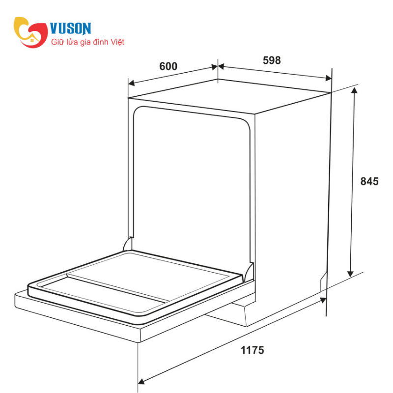 - Kích thước sản phẩm: 598R x (600-1175)S x 845C mm