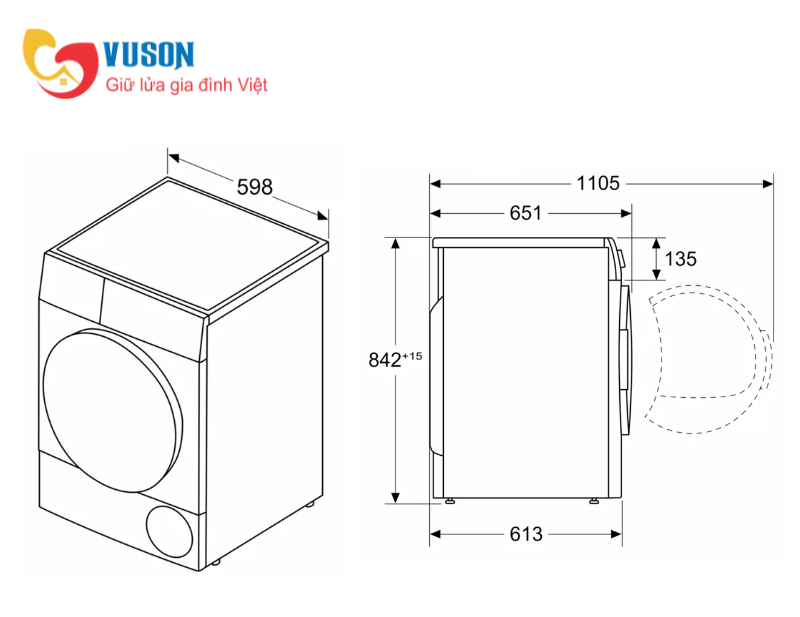 - Kích thước sản phẩm: 598R x 613S x 842C mm