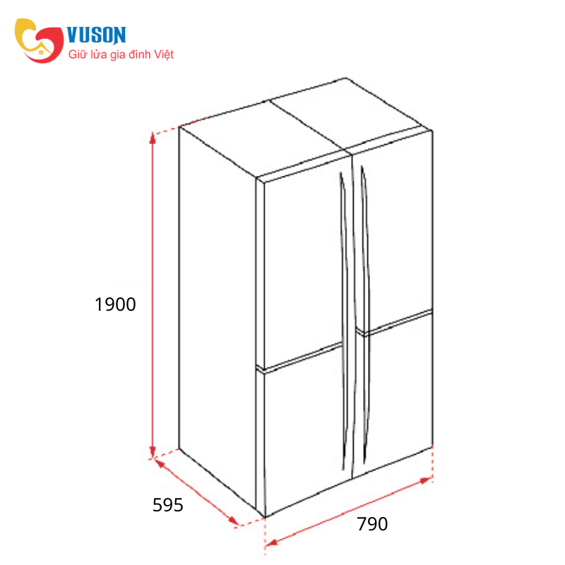 - Kích thước sản phẩm: 790R x 595S x 1900C mm
