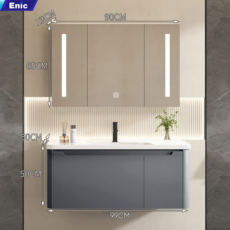 Tủ phòng tắm thông minh Enic BT11 xám (100cm - Gương led thẳng)