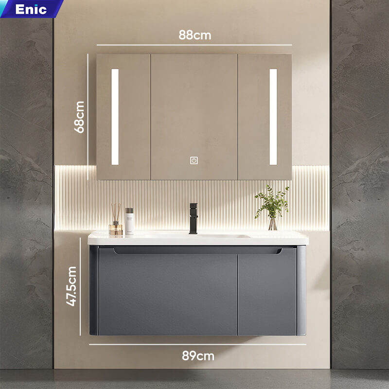 Tủ phòng tắm thông minh Enic BT11 xám (90cm - Gương led thẳng)